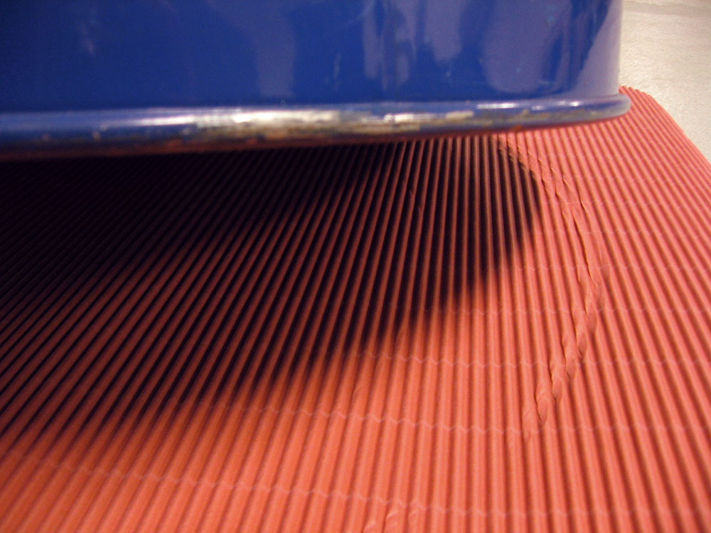 Safety Grip is a paper-based anti-slip mat. The solid cardboard is coated on both sides, the rubberized latex coating on the outer sides is what results in the slip-inhibiting properties.