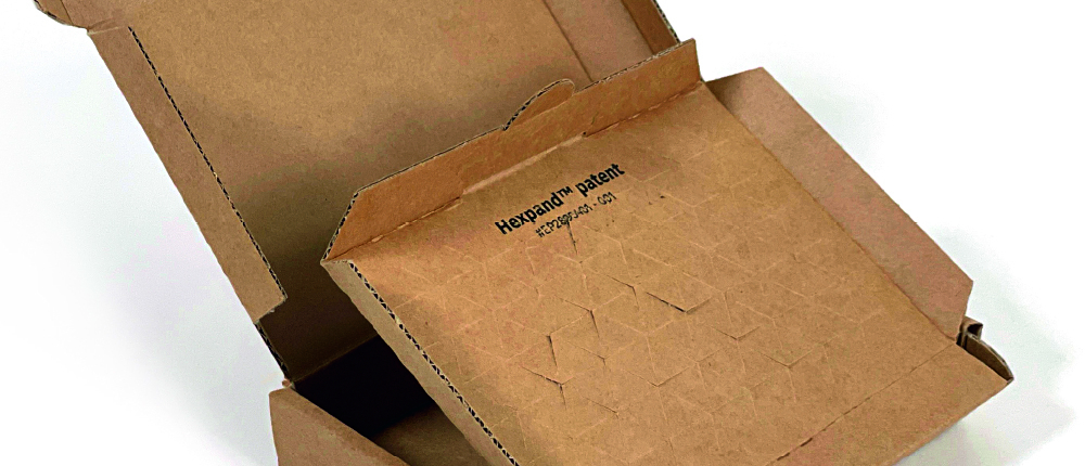 Hexpand™ besteht zu 100 % aus recycelbarer Wellpappe und ist als Mono-Material-Lösung besonders umweltfreundlich. Durch den innovativen Expansionsmechanismus passt sich die Verpackung individuell der Form und Größe der Produkte an, wodurch der Bedarf an zusätzlichem Füllmaterial minimiert wird.
